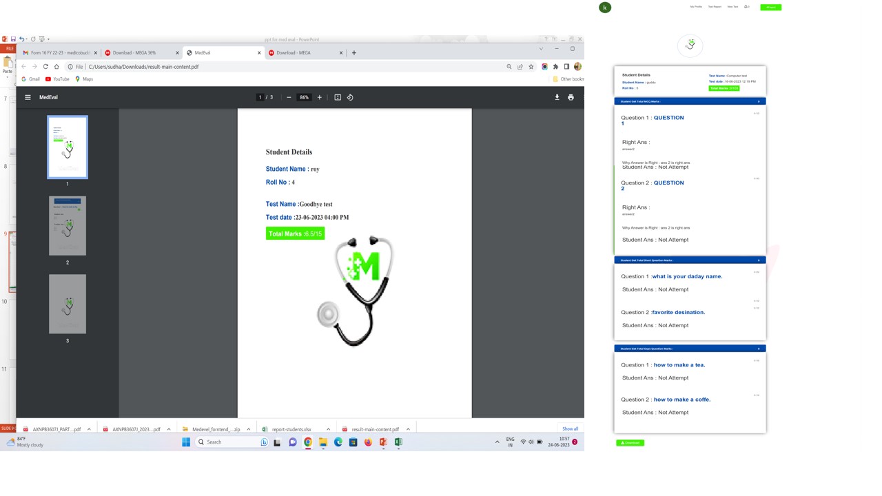 Medeval Web-Based Evaluation Tool is an advanced assessment system that combines multiple question types, including Multiple Choice Questions (MCQs), short theory questions, image-based questions, Objective Structured Clinical Examination, and Viva